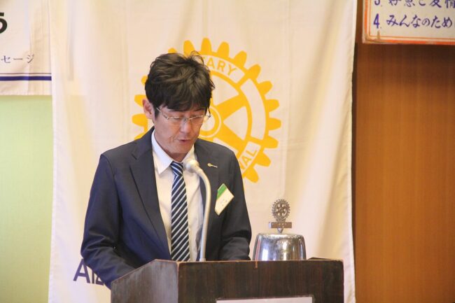 ロータリーのことはもちろん、自己紹介ではご自身の半生を、ユーモアを交えてお話しくださったのが印象的でした。