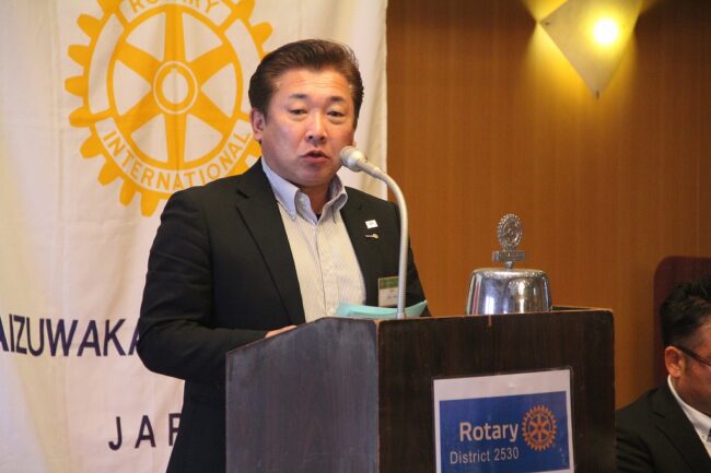 本日はお忙しいところ当クラブへお越しいただきありがとうございます。日頃より地区運営、そして私たちクラブへのご指導とご支援を賜り、心より感謝申し上げます。