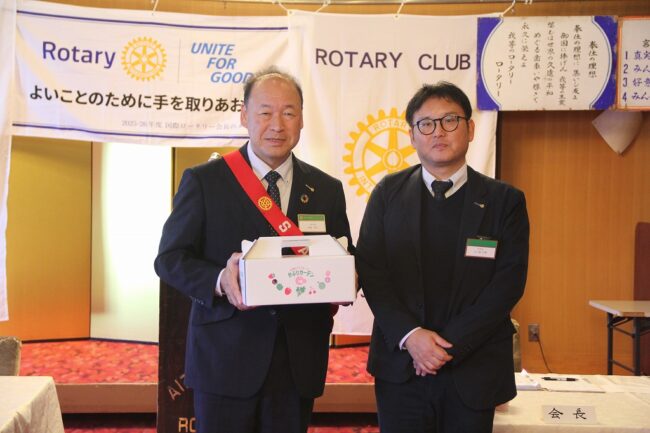 おいしそうなリンゴは、姉妹クラブの余市RCからの贈り物です。ありがとうございます、いただきます!