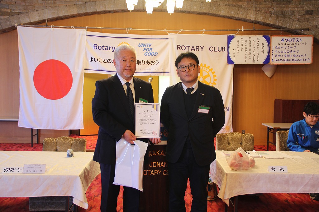 大塚会員に、2530地区から30年の在籍への表彰状が贈られました。これからも末永くよろしくお願いします!