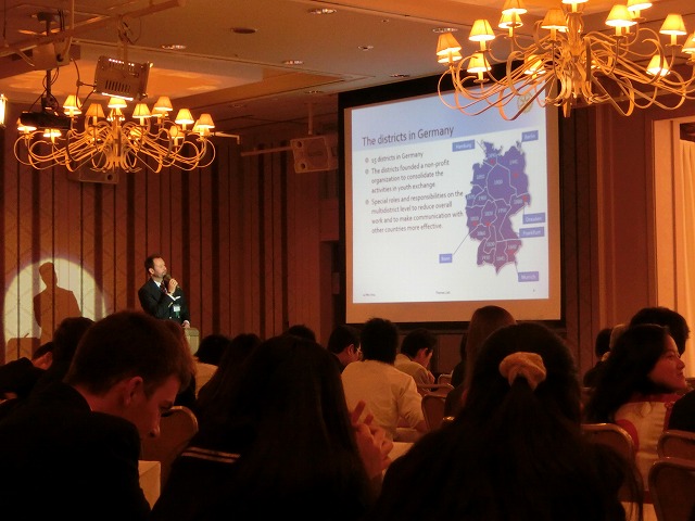 また、Thomas Liebドイツマルチ地区日本・韓国担当委員長による青少年交換プログラムの現況のスピーチ。